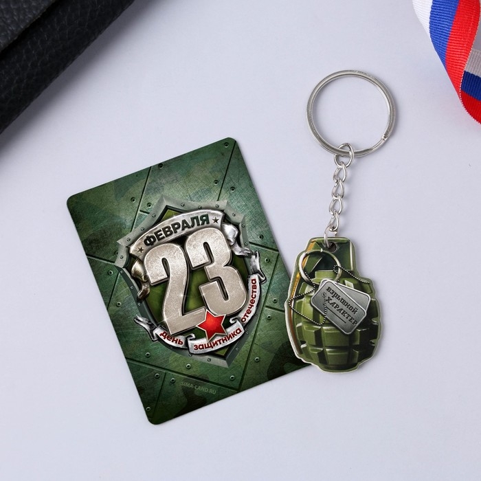 Магнит и брелок на 23 Февраля «Граната», подарочный набор : 2 предмета