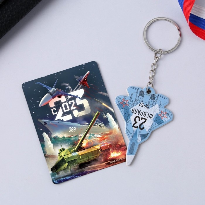 Магнит и брелок на 23 Февраля «Самолёт», подарочный набор : 2 предмета