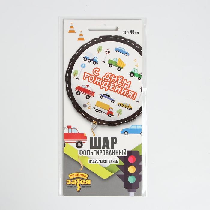 Шар фольгированный 18" «С днём рождения!», машинки, круг
