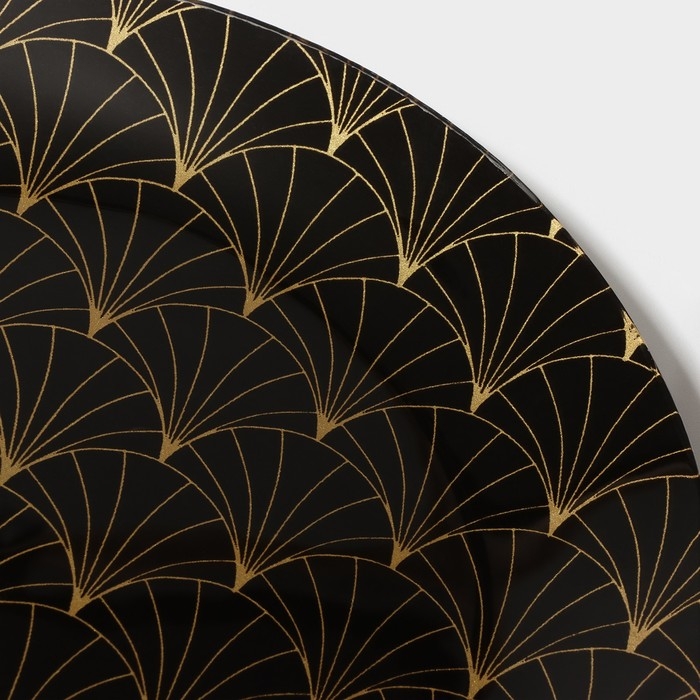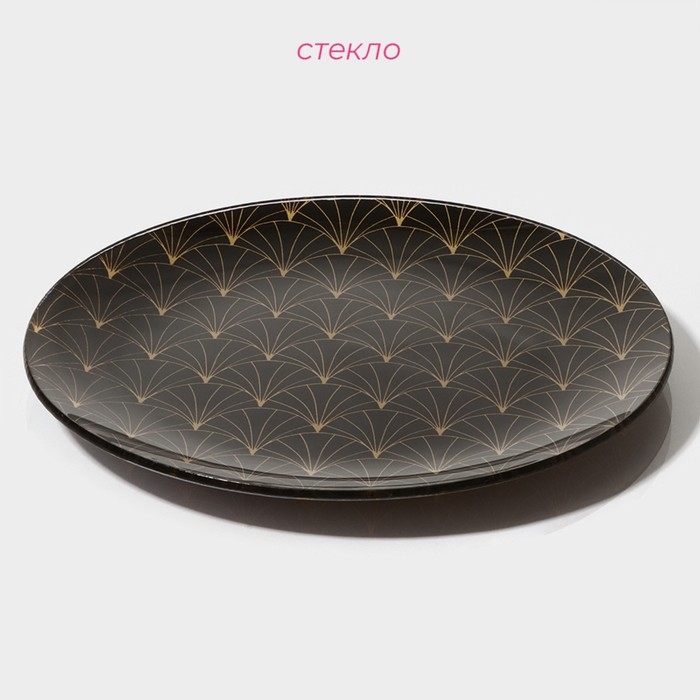 Тарелка стеклянная Доляна «Золотое перо», 20×1,3 см, цвет чёрный