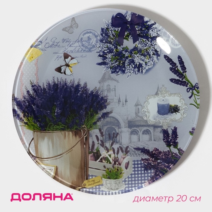 Тарелка стеклянная круглая Доляна «Лаванда», d=20 см
