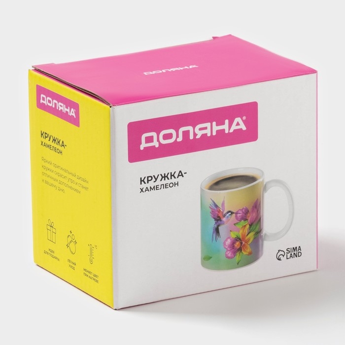 Кружка-хамелеон Доляна «Колибри» — не просто приспособление для питья. Это настоящее украшение дома и яркий аксессуар! Налейте горячего чаю, кофе или какао, и кружка сразу поменяет цвет. Вашу оригинальность по достоинству оценят гости, а сам сосуд освежит любой интерьер благодаря смелому дизайну.