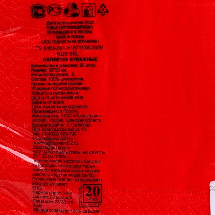 Салфетки бумажные New line FRESCO «Красный», 3 слоя, 33*33 см, 20 шт.