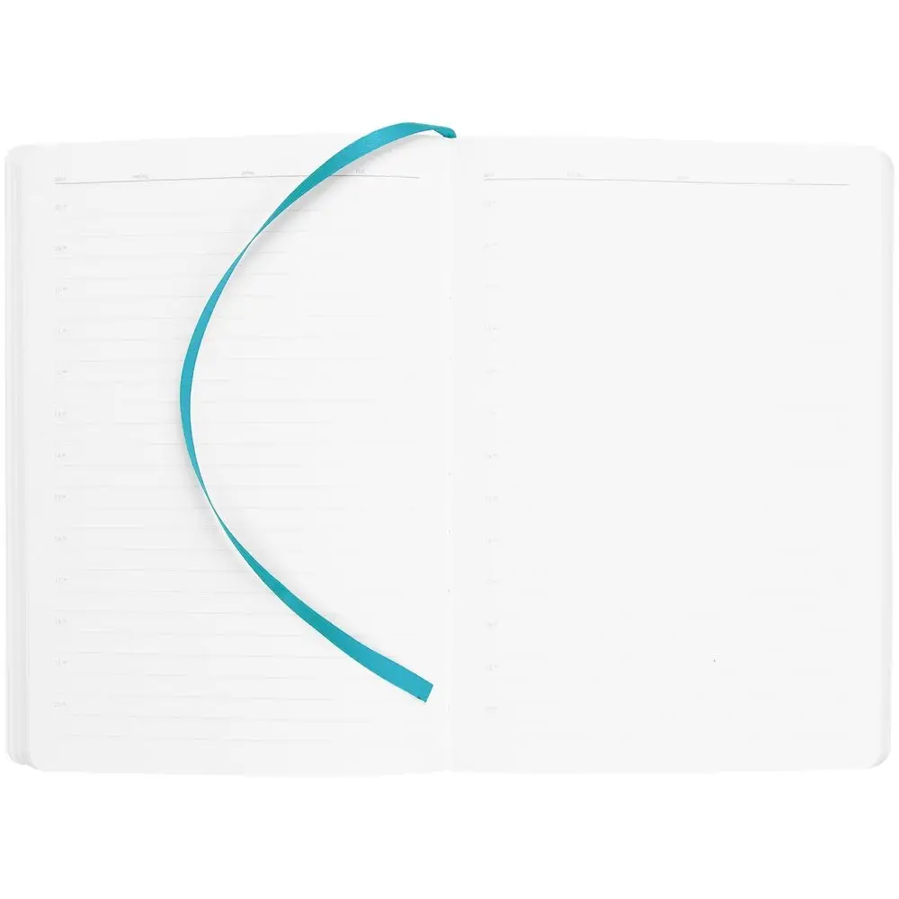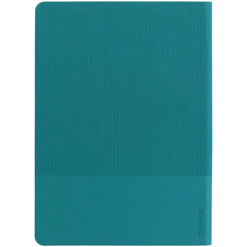 Ежедневник с гибкой обложкой выполнен из материала Soft Touch, цвет морской волны II и Latte, цвет морской волны (внутренний материал); дополнен ляссе бирюзового цвета и фактурным тиснением обложки.