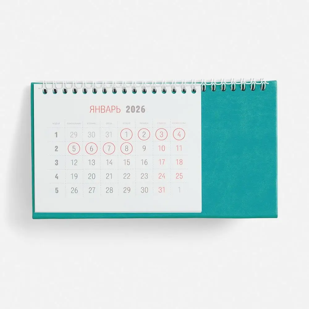Настольный, перекидной календарь-домик выполнен из материала Latte, цвет морской волны II.