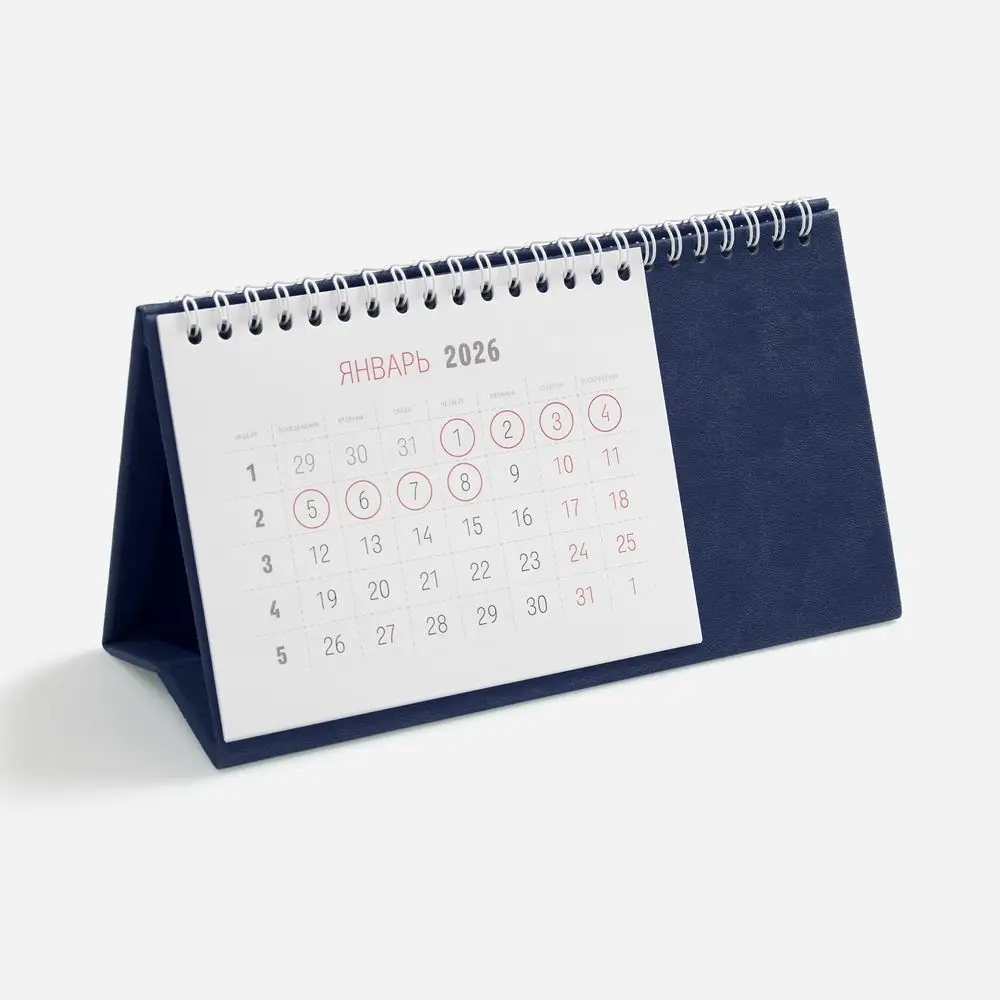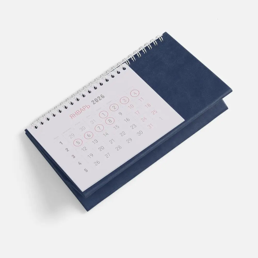 Настольный, перекидной календарь-домик выполнен из материала Latte, темно-синий ХХ.
