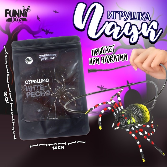 Прыгающие животные «Страшно интересно», паук, в пакете