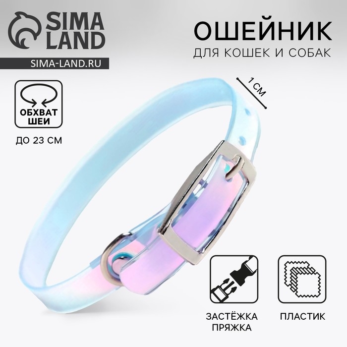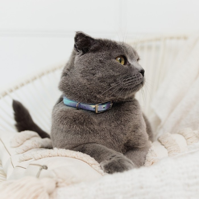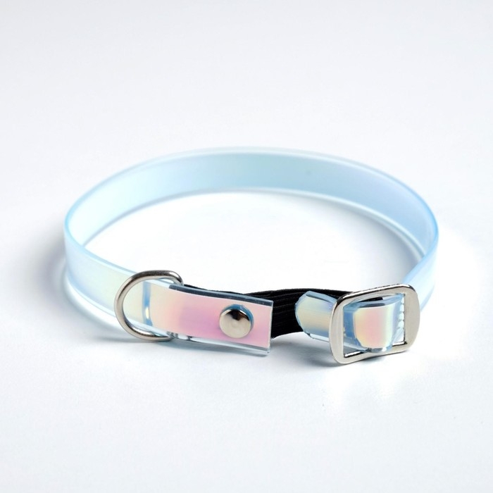 Голографический ошейник для кошек и собак красиво переливается на свету. Блики на аксессуаре помогут уследить за питомцем и обеспечат ему безопасность в тёмное время суток. Ошейник лёгкий и не натирает шею животного.