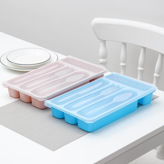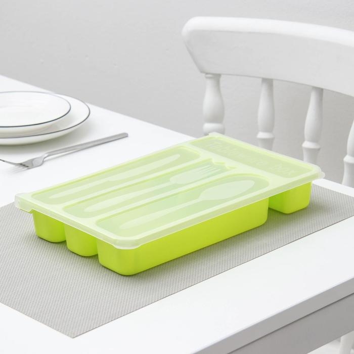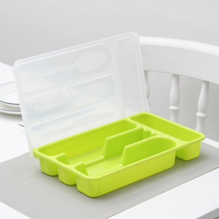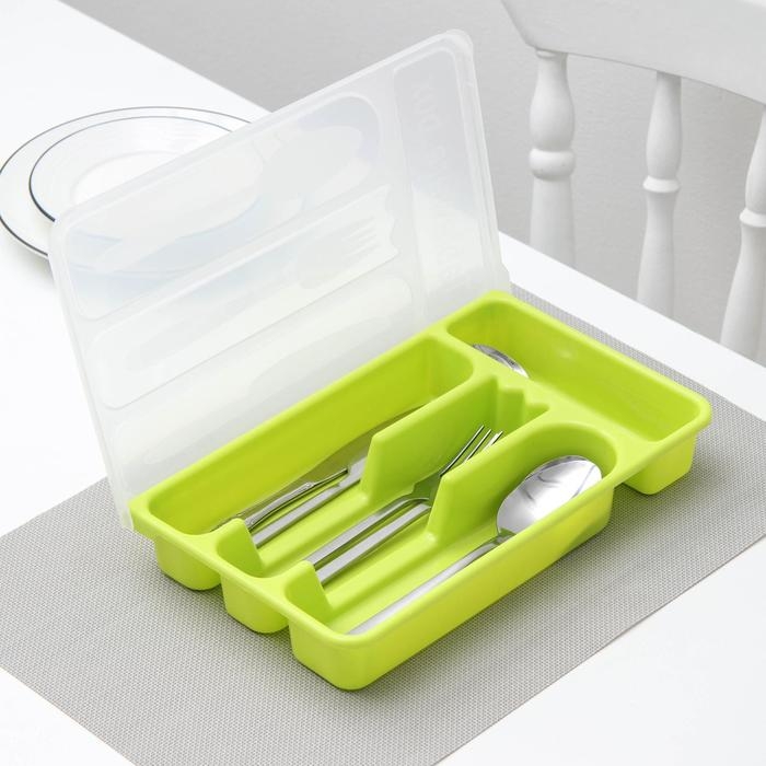 Лоток для столовых приборов с крышкой Доляна, 30×18×4,5 см, цвет МИКС