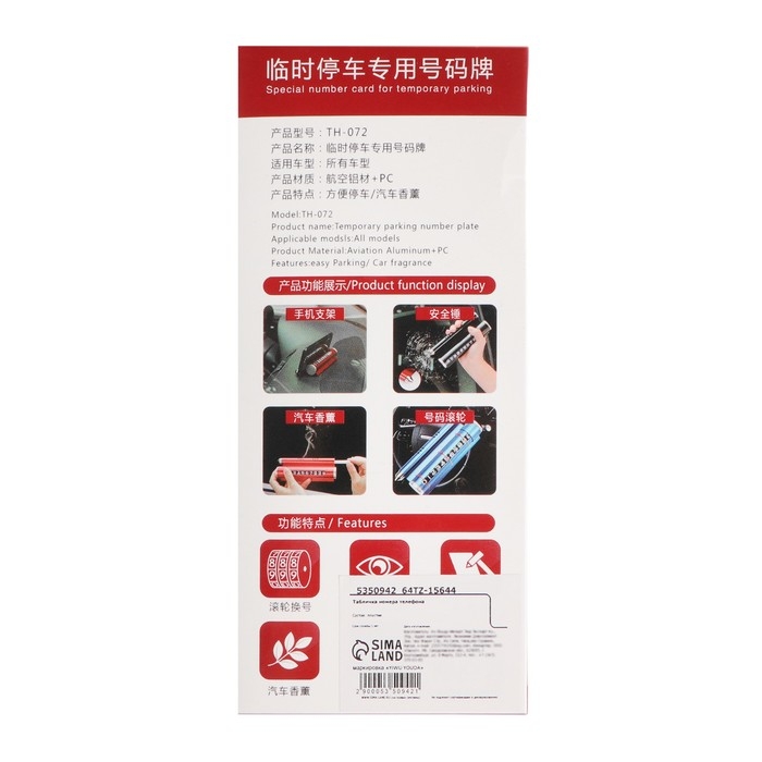 Парковочная табличка с номером телефона имеет подвижную конструкцию, что позволяет скрыть номер телефона легким движением одной руки. Набор имеет трафарет с цифрами от 0 до 9- это позволяет быстрого и легкого составить или изменить номера телефона, в случае если автомобилем пользуется не один водитель. В нижней части корпуса находится клейкая лента, которая позволяет надежно прикрепить табличку в нужном месте автомобиля. Современный дизайн таблички не будет выделяться из интерьера салона вашего автомобиля. Парковочная табличка залог спокойствия водителя.