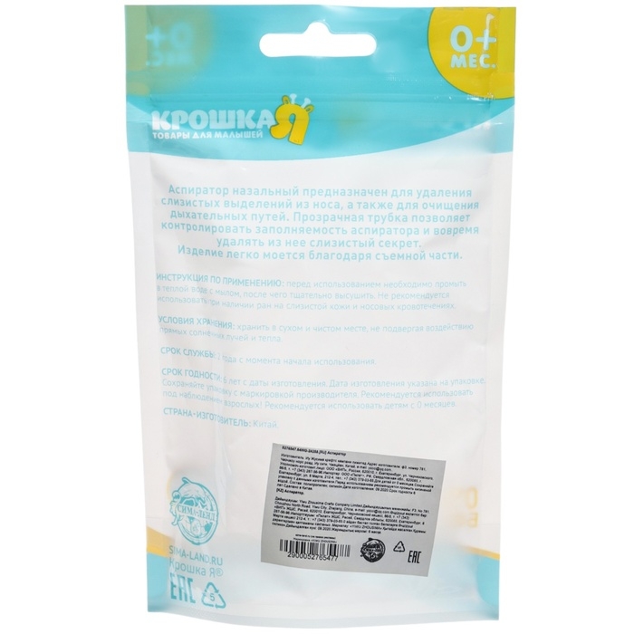 Детский назальный аспиратор с отводной трубкой, прозрачный