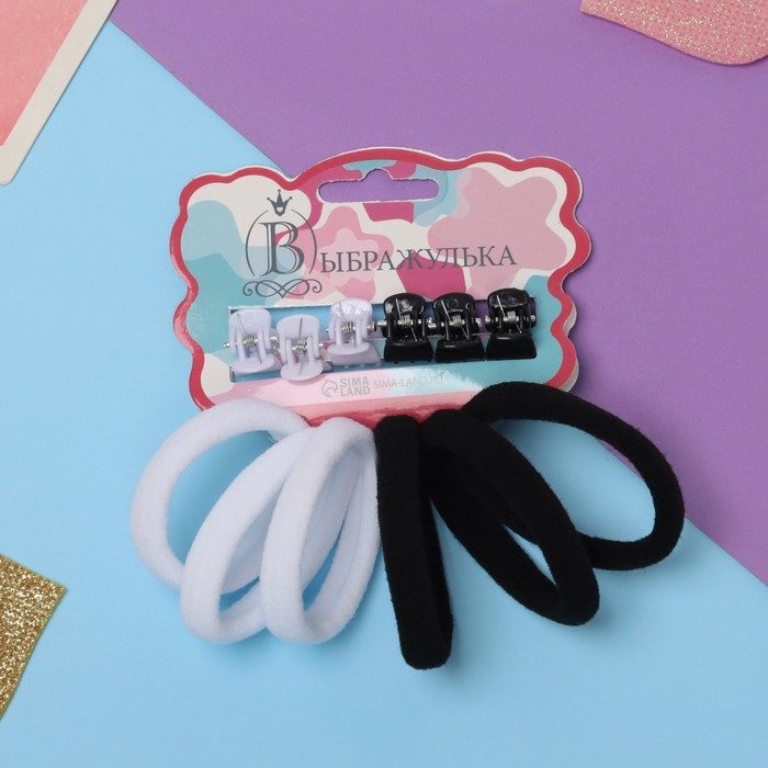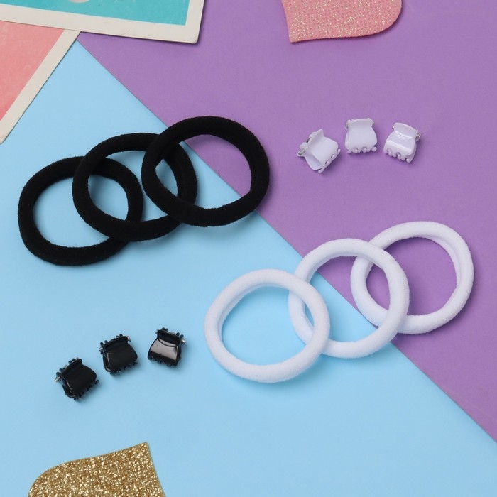 Набор для волос "Спорт" (6 резинок, 6 крабов) чёрный и белый