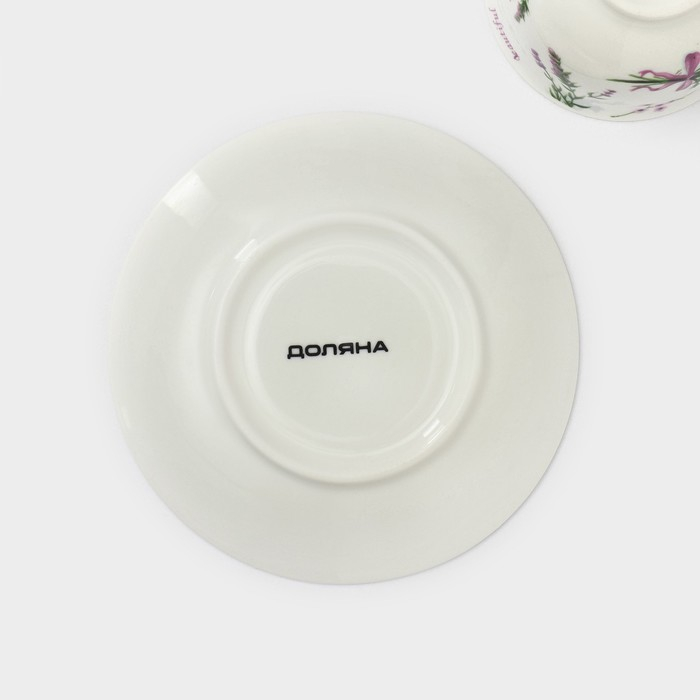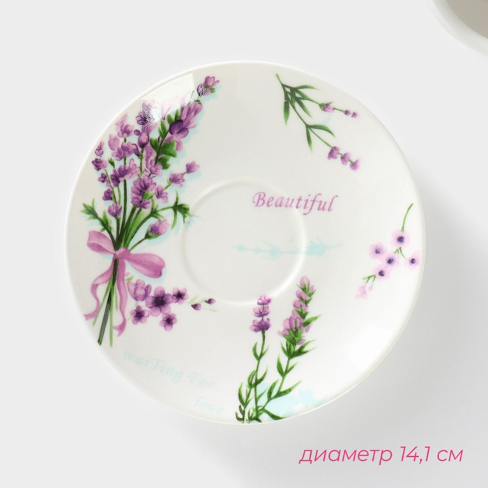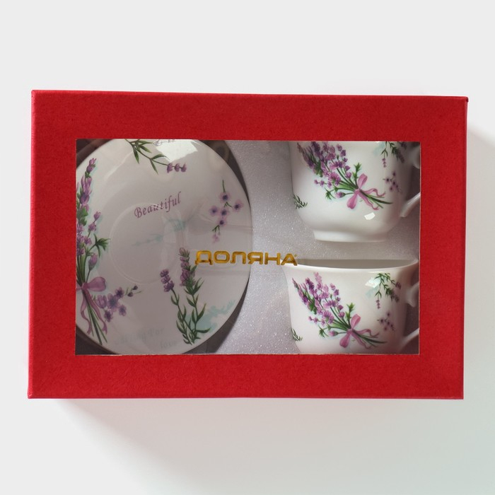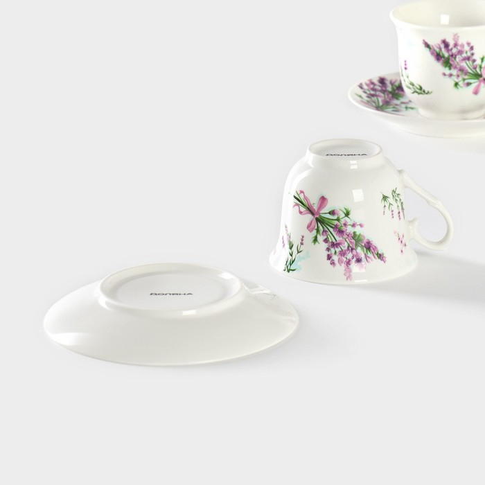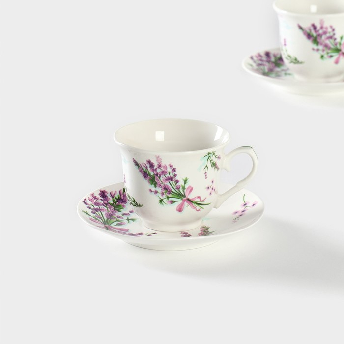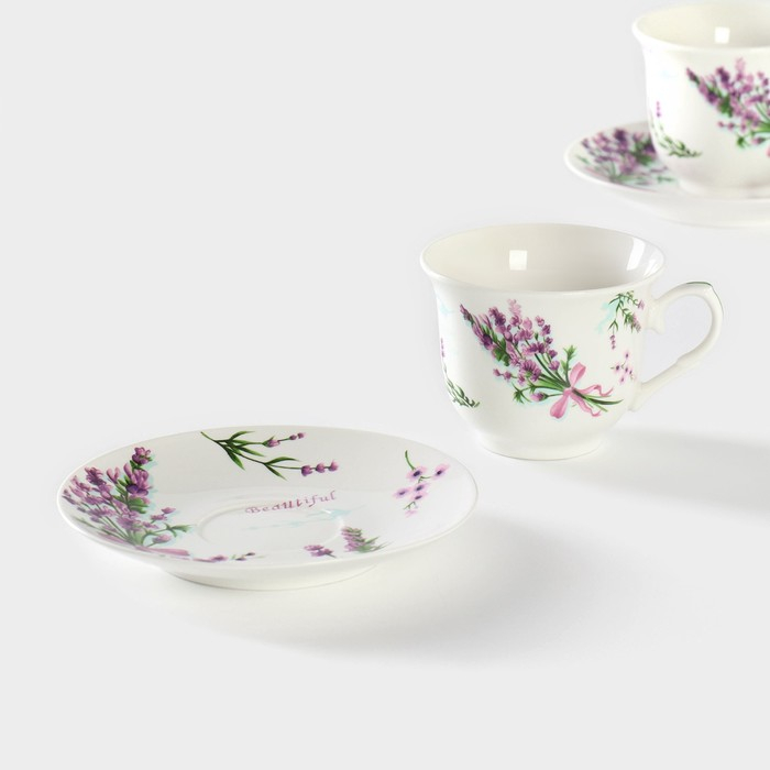 Сервиз фарфоровый чайный Доляна «Лаванда», 4 предмета: 2 чашки 220 мл, 2 блюдца d=14,2 см, цвет белый