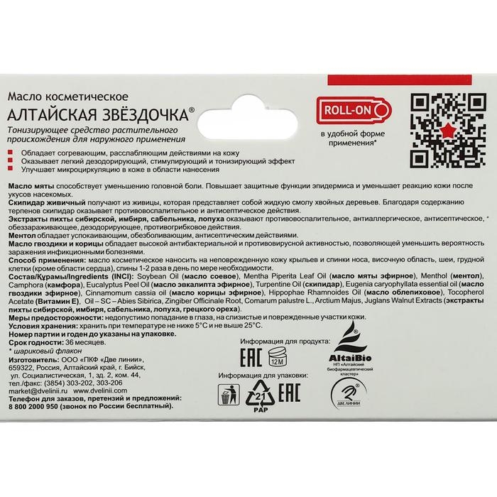 Масло «Алтайская Звёздочка», при простуде и насморке, 7 мл