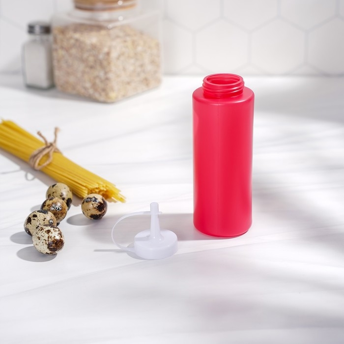 - Удобная и вместительная бутыль отлично подойдет для соусов, сиропов, жидкого теста.
