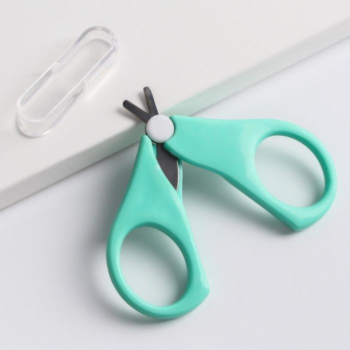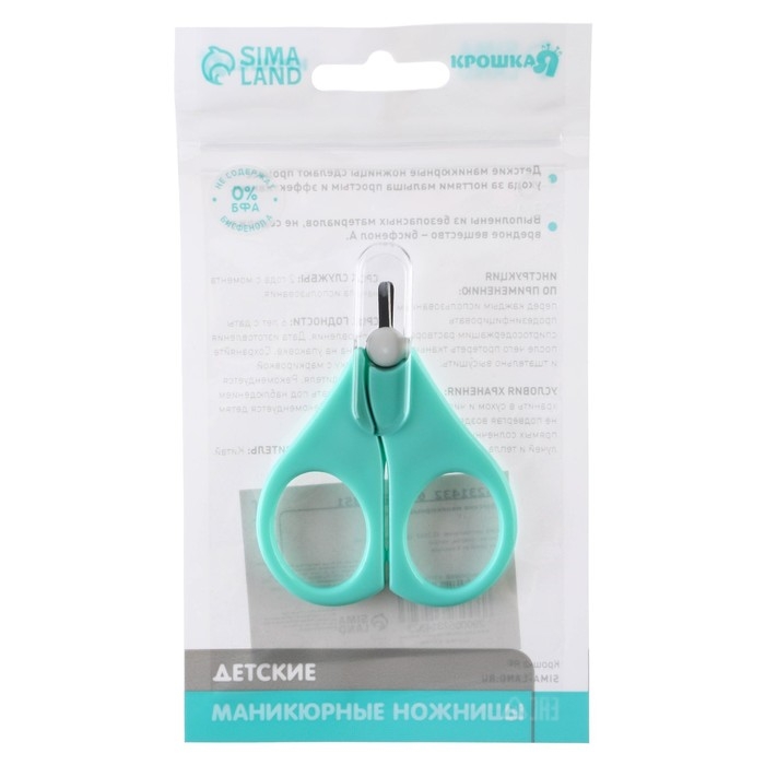 Детские маникюрные ножницы, с защитным колпачком, ВИД 1, цвет бирюзовый