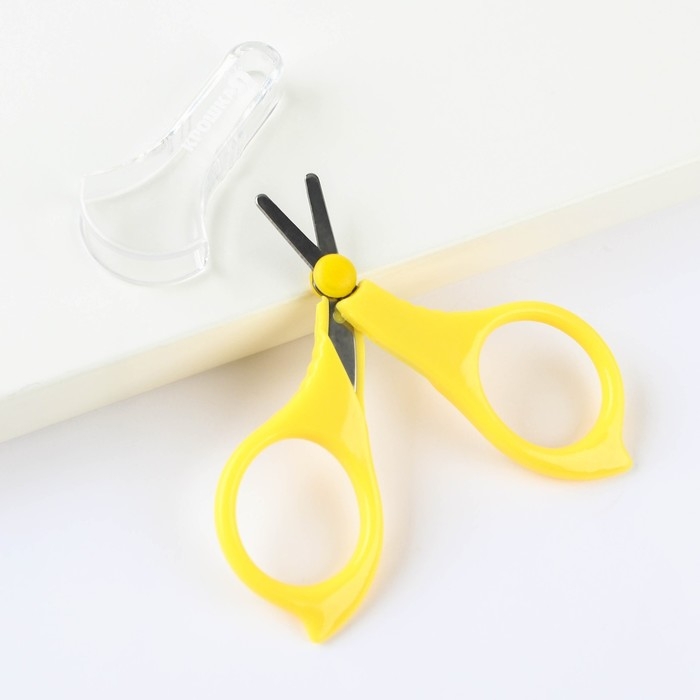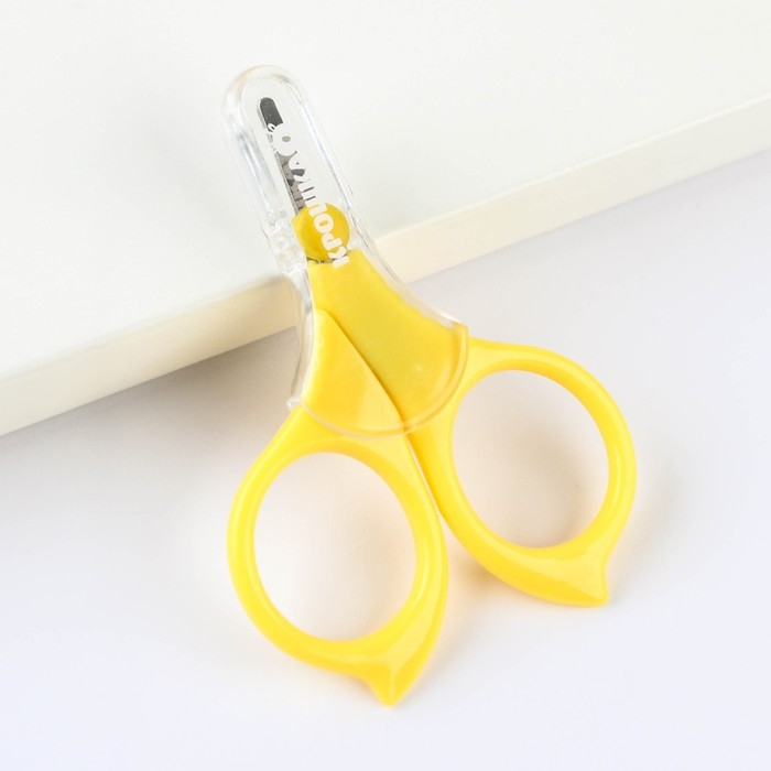 Детские маникюрные ножницы, с защитным колпачком, ВИД 2, цвет желтый