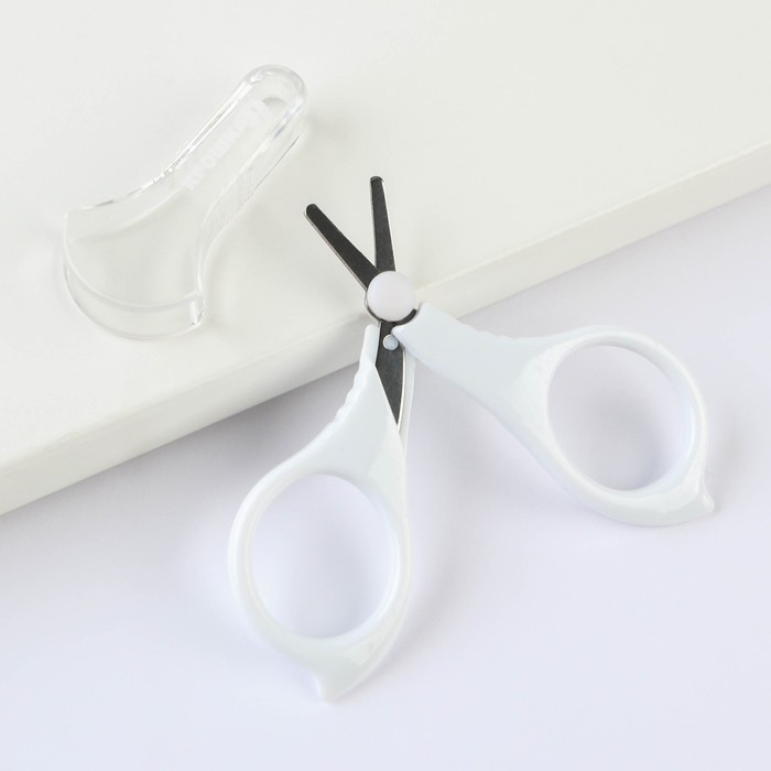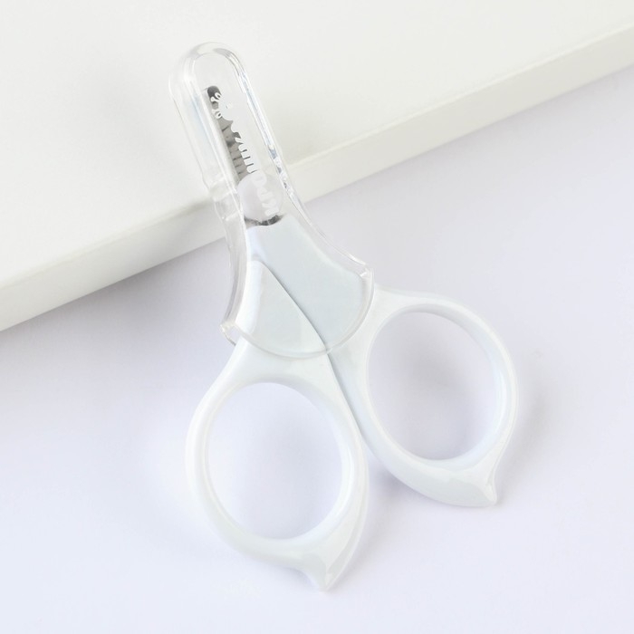 Детские маникюрные ножницы, с защитным колпачком, ВИД 2, цвет белый