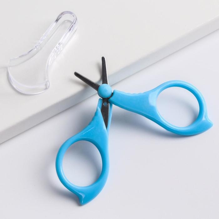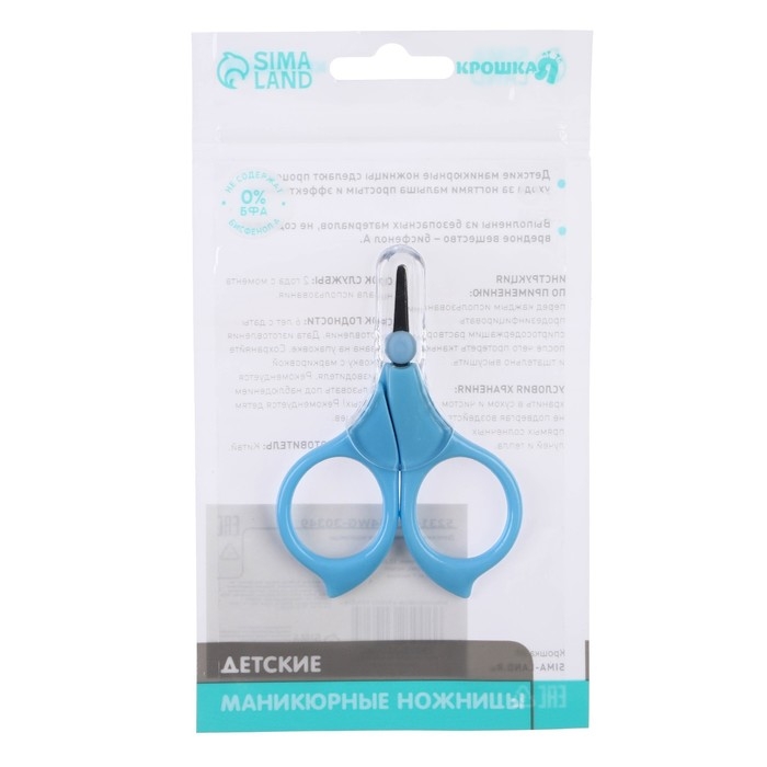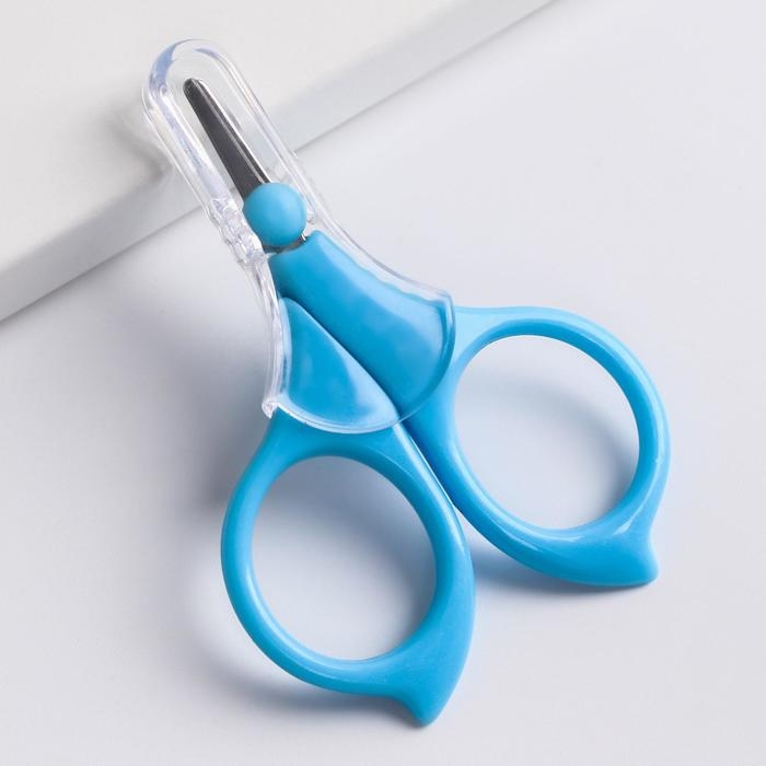 Детские маникюрные ножницы, с защитным колпачком, ВИД 2, цвет голубой