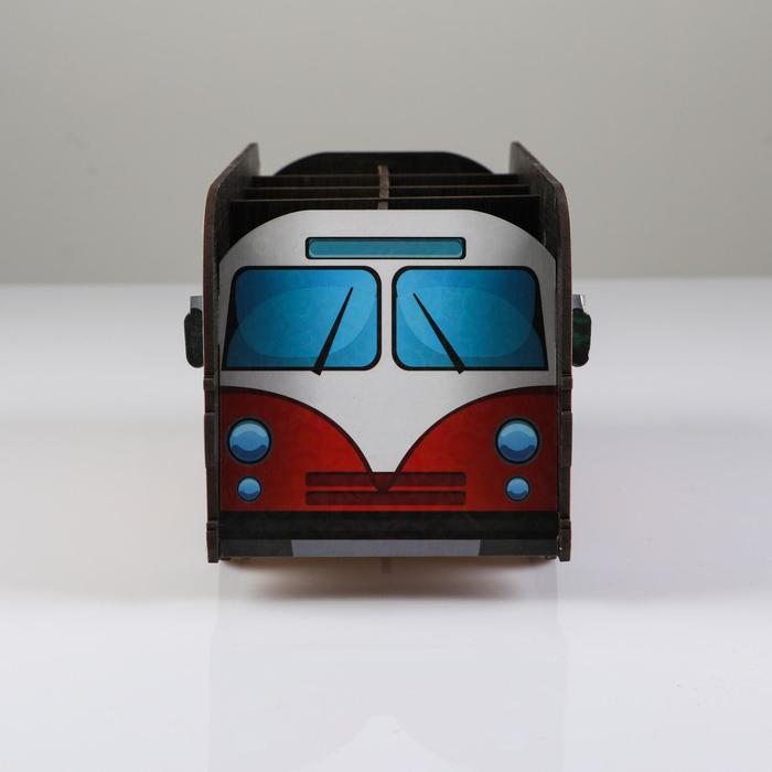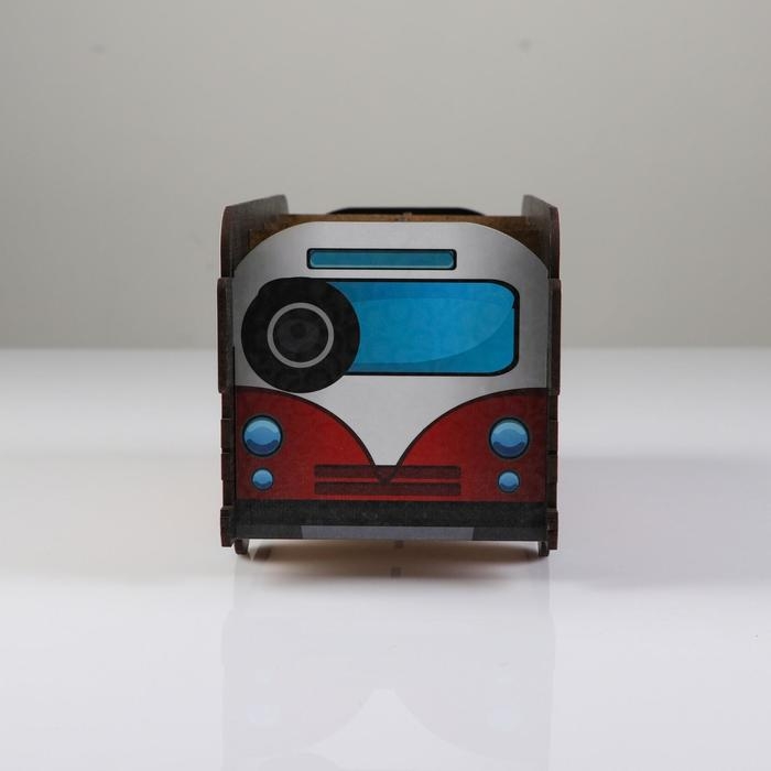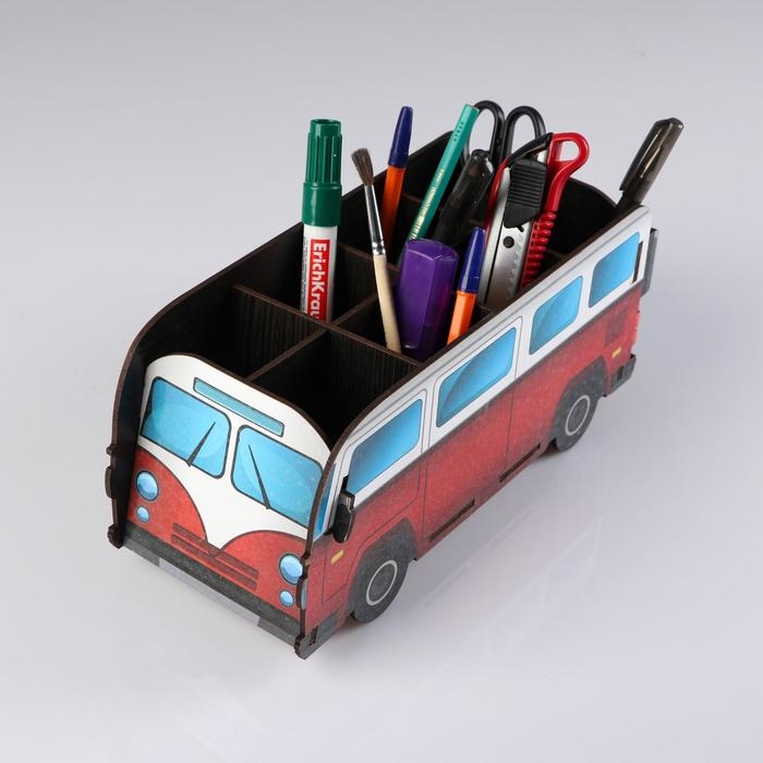 Подставка для канцелярии деревянная "Фургон", с принтом