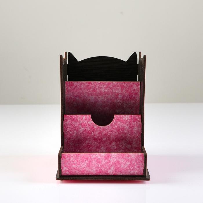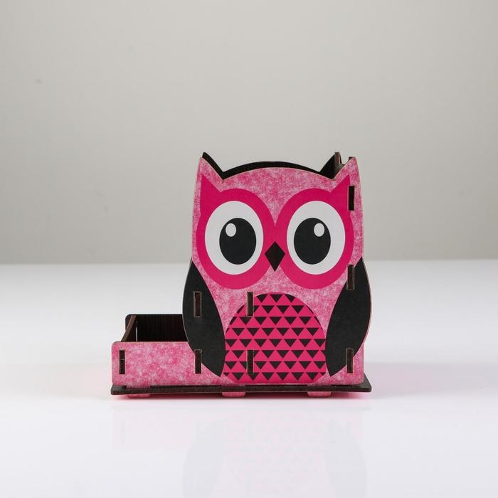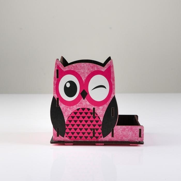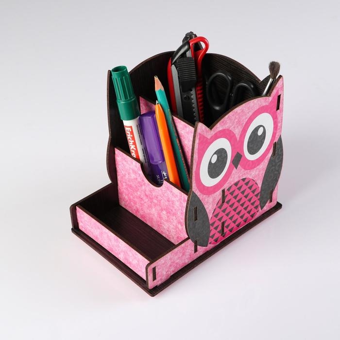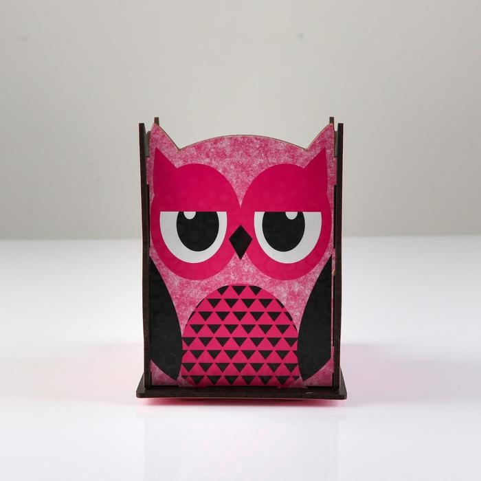 Подставка для канцелярии деревянная "Совушка", с принтом, розовая