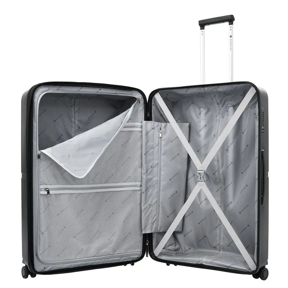 Коллекция Santiago — искусно подобранное сочетание функциональности, строгости и элегантности. Каждый чемодан изготовлен из прочного полипропилена, что гарантирует его долговечность и защиту вещей во время путешествия.