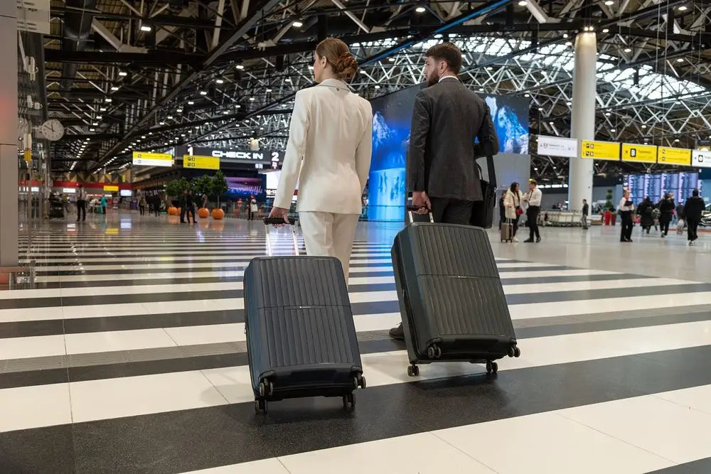 - Блок крепления колеса встроен в корпус чемодана, что обеспечивает лучшую устойчивость к внешнему воздействию