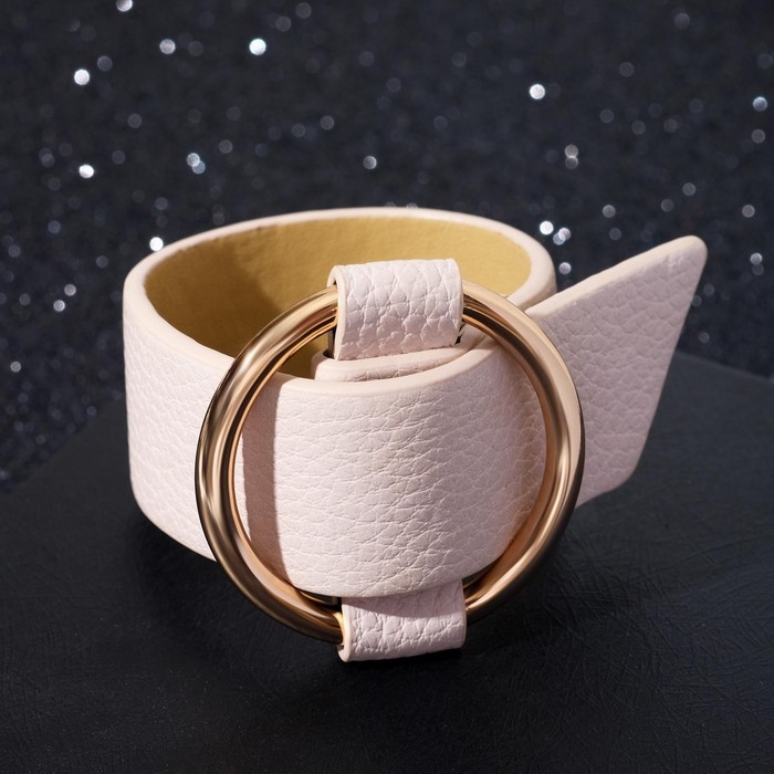 Браслет кожа «Помпеи» захват, цвет светло-бежевый в золоте, 24 см