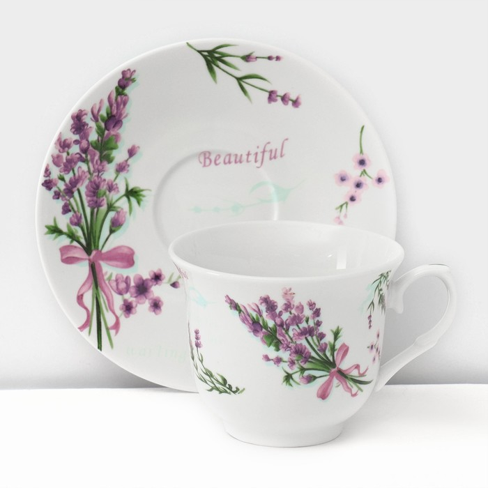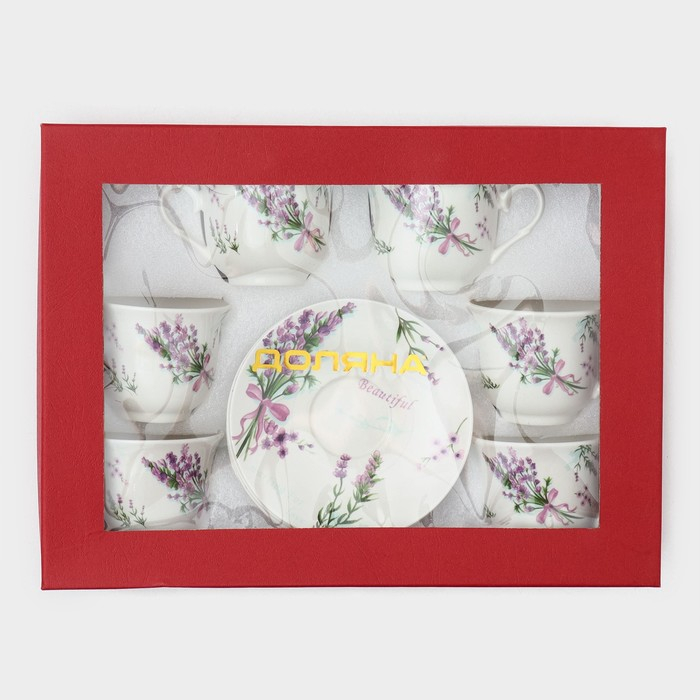 Сервиз фарфоровый чайный Доляна «Лаванда», 12 предметов: 6 чашек 220 мл, 6 блюдец d=14 см