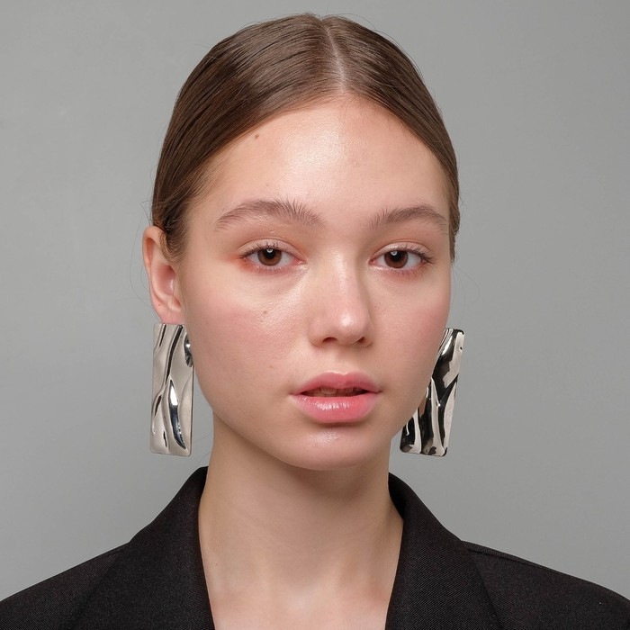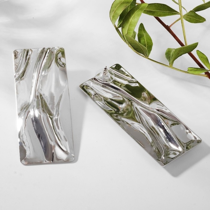 Серьги металл «Атмосфера» прямоугольник, цвет серебро