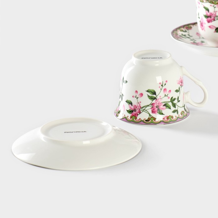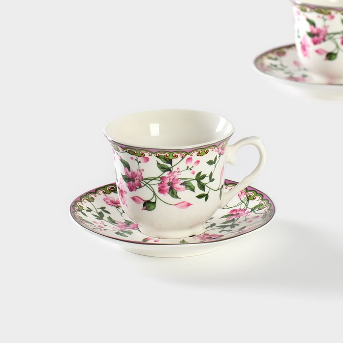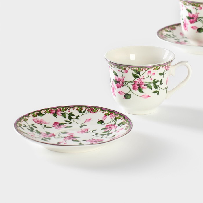 Сервиз фарфоровый чайный Доляна «Вивьен», 12 предметов: 6 чашек 200 мл, 6 блюдец d=15 см, цвет МИКС