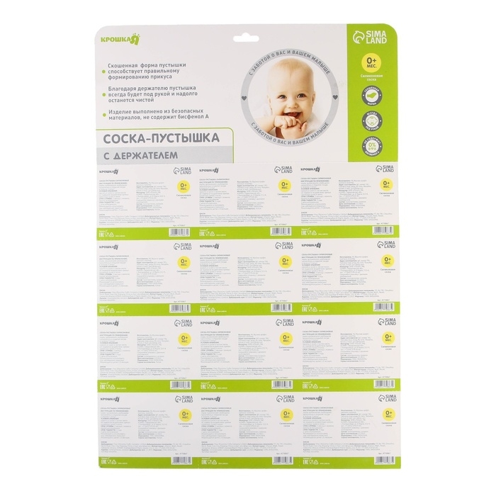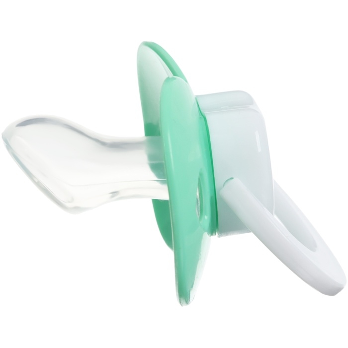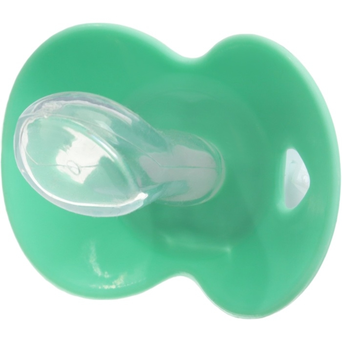 Соска пустышки силиконовая и имеет анатомическую форму диска, специальные вентиляционные отверстия на пустышке улучшают циркуляцию воздуха не раздражают кожу малыша и не оставляют следов и опрелостей. Создана для удовлетворения естественного сосательного рефлекса малышей. Пустышка анатомической формы имеет немного сплюснутый сосок, благодаря чему прилегает к языку.
