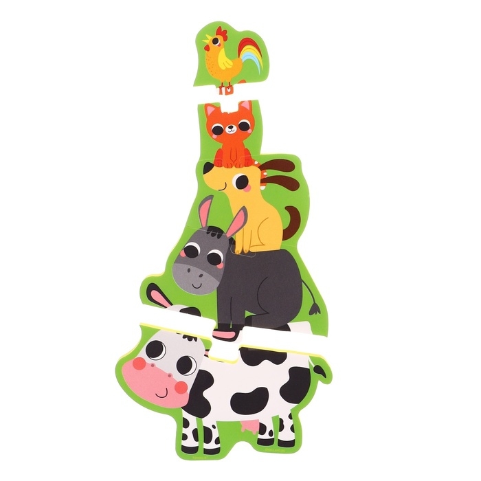 Мягкий пазл для малышей «Пирамидка: Животные фермы», 5 деталей, Крошка Я