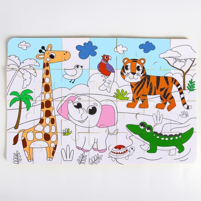 Мягкий пазл для малышей раскраска «Африка», размер 50х33 см, 28 деталей, Крошка Я