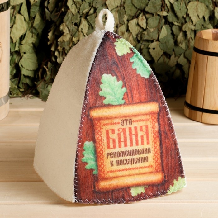 Шапка для бани "Классическая" с термопечатью "Эта банька рекомендована к посещению"