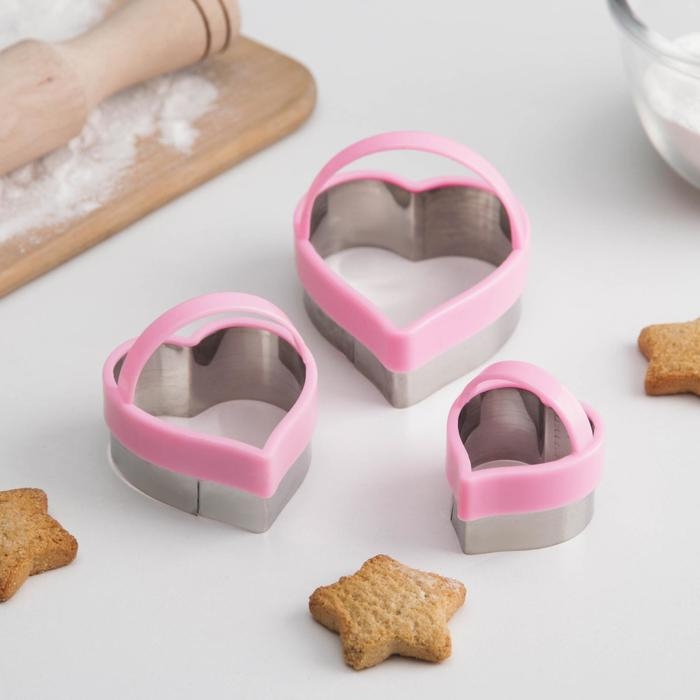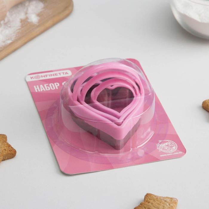 Набор форм для печенья KONFINETTA «Сердце», 10×8 см, 3 шт, цвет МИКС