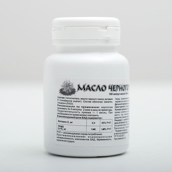 Масло чёрного тмина, иммуностимуляция, 100 капсул по 0,4 г