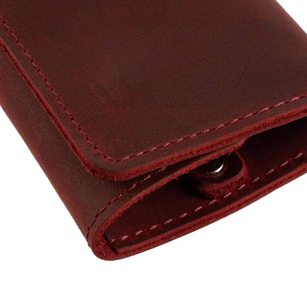 Ключница изготовлена из плотной и прочной натуральной кожи Crazy Horse. На ее поверхности довольно быстро появляется неповторимый рисунок из потертостей и складок — следы времени придают материалу изысканный винтажный вид, делая каждый предмет уникальным в своем роде. Так изделия, подобно благородным напиткам, со временем приобретают лишь большую ценность.
