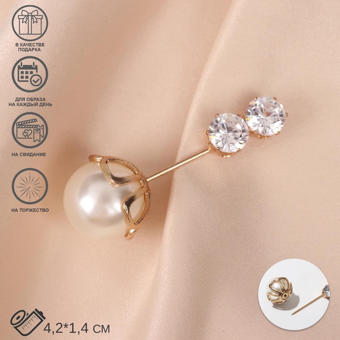 Булавка «Жемчужная россыпь» со стразами, 7,5 см, цвет белый в золоте