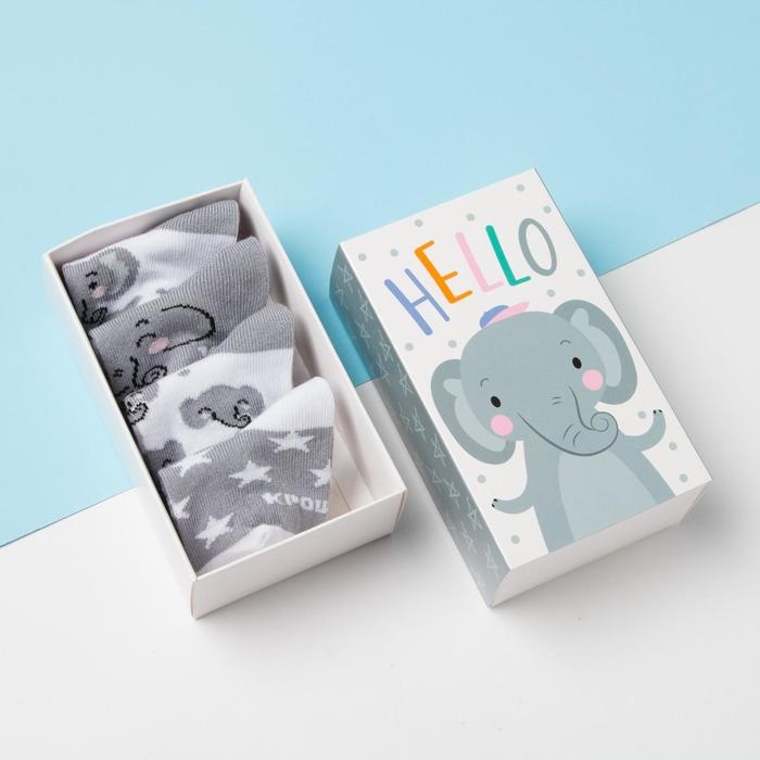 Набор носков Крошка Я «Слоник», 4 пары, 10-12 см