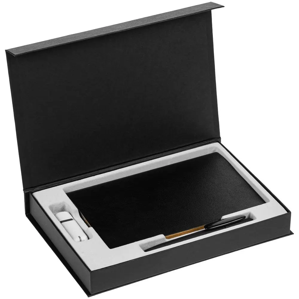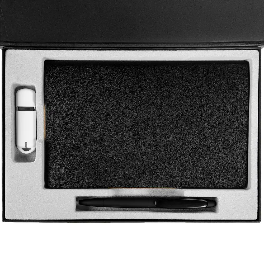 Коробка Silk с ложементом под ежедневник 13x21 см, флешку и ручку, ver. 2, черная