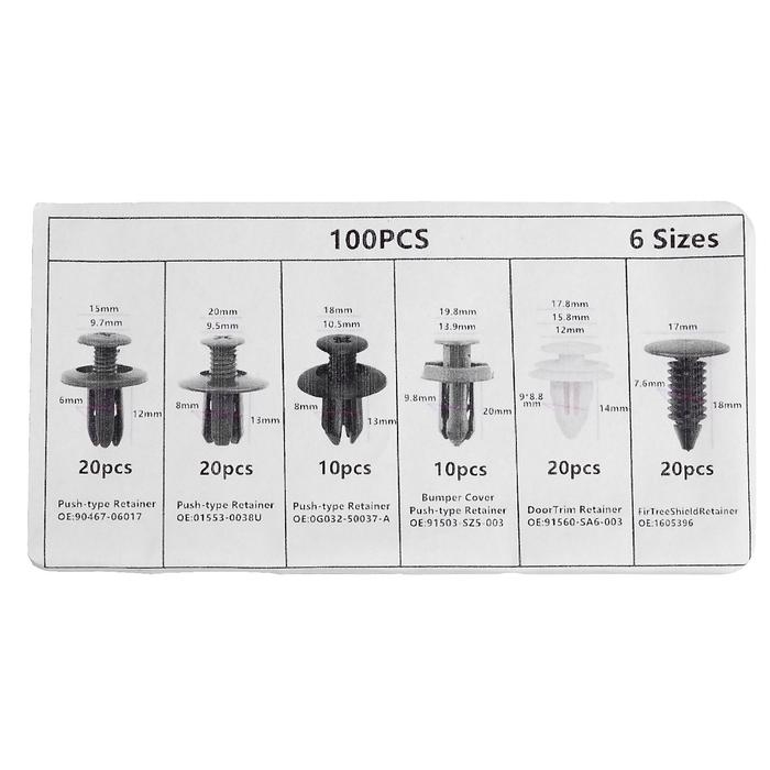 Клипсы и пистоны крепежные, 6 видов, набор 100 шт