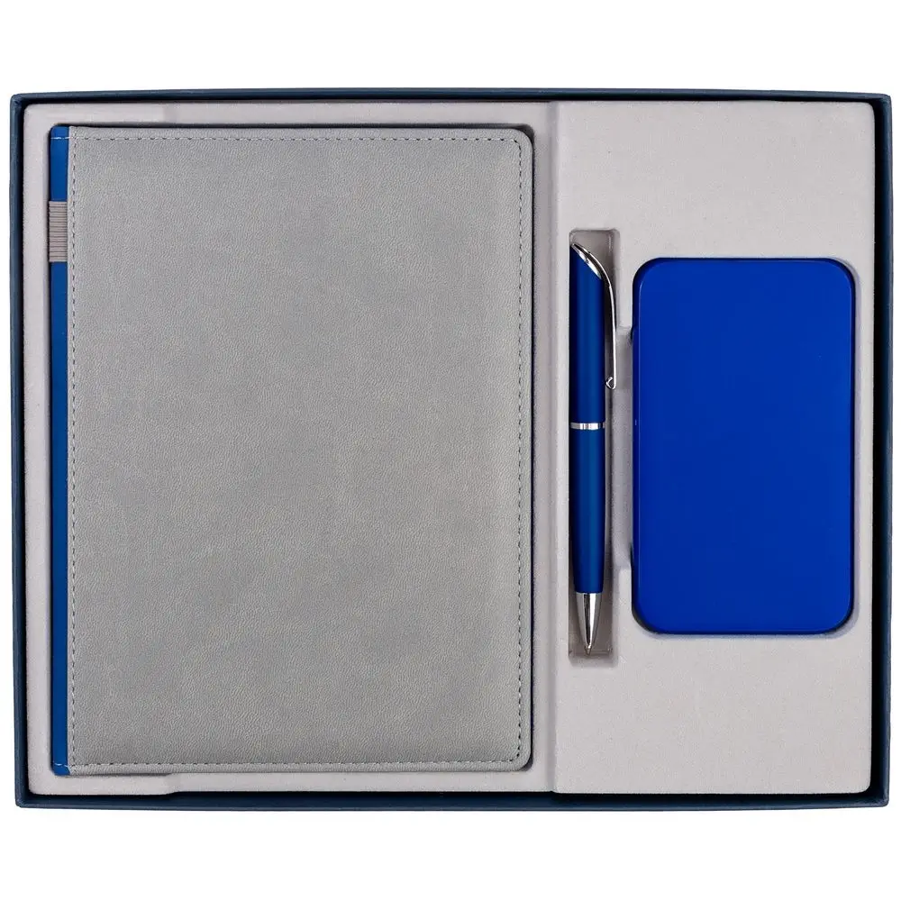 Коробка Horizon с ложементом под ежедневник и ручку, синяя