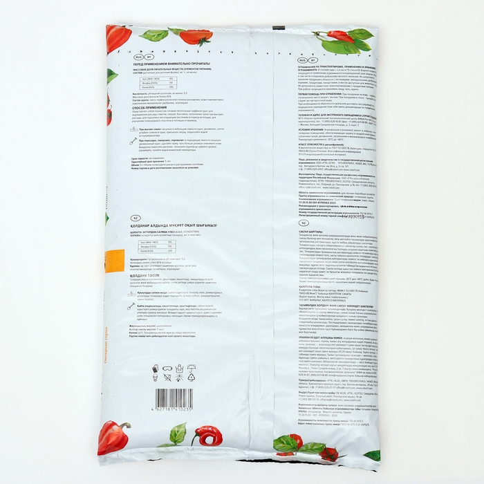 - содержание основных питательных элементов: азот (NH4+NO3) — не менее 250 мг/мл, фосфор (P2O5) — не менее 400 мг/мл, калий (К2О) — не менее 500 мг/мл;
