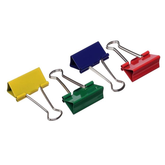 Набор зажимов для бумаг цветных 32мм, 12 штук, 5 цветов, в картонной коробке