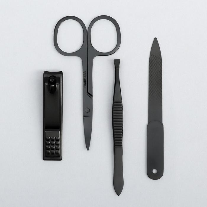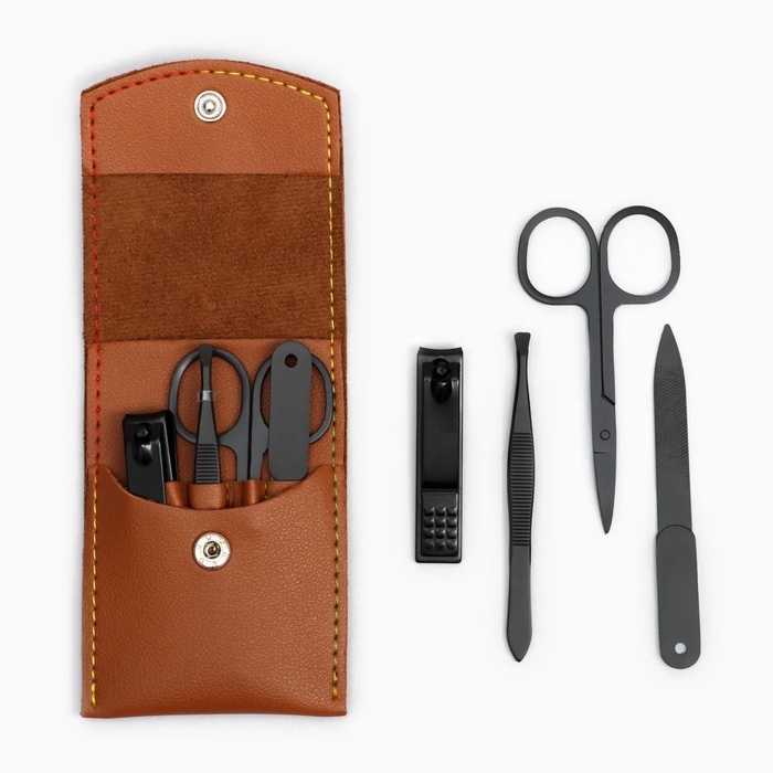 Набор маникюрный, 6 предметов, в футляре, цвет чёрный