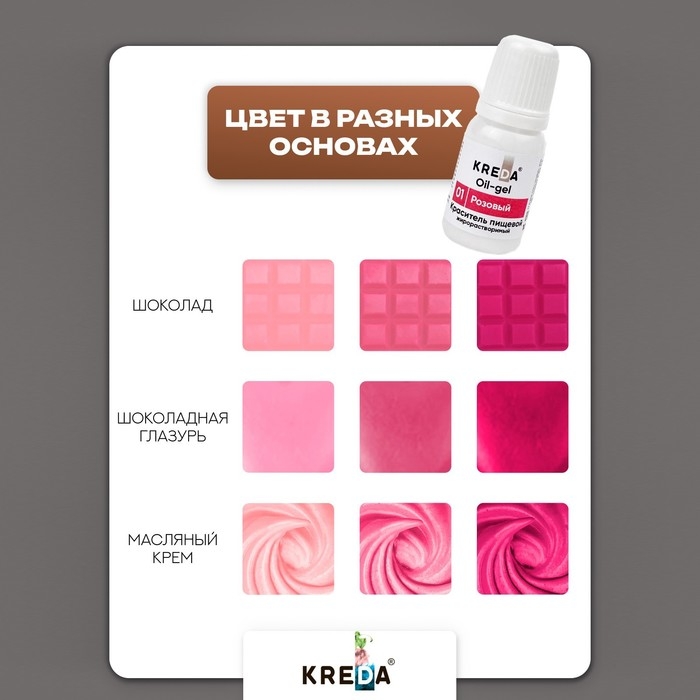Жирорастворимые пищевые красители Kreda Bio Oil-gel обладают широким спектром цветов, имеют высокую красящую способность и экономичны в использовании. Удобный дозатор позволяет чётко отмерять нужное количество капель, а благодаря гелевой основе красителя окрашиваемый материал не меняет консистенцию. Идеально подходят для десертов, мороженного, фруктового льда, кремов и соусов