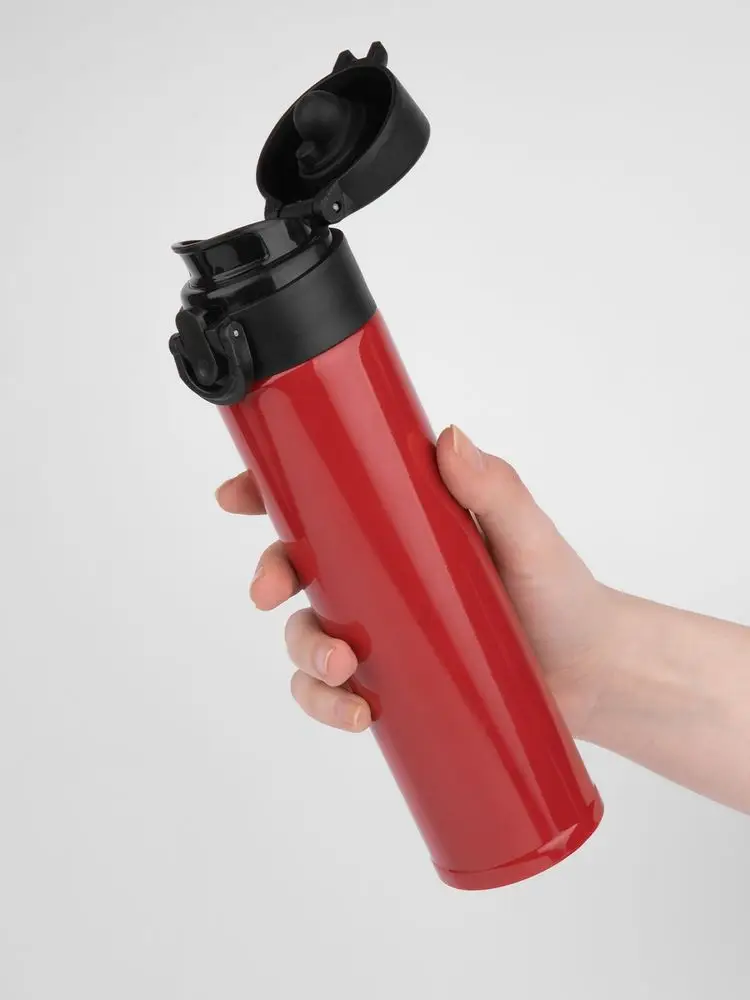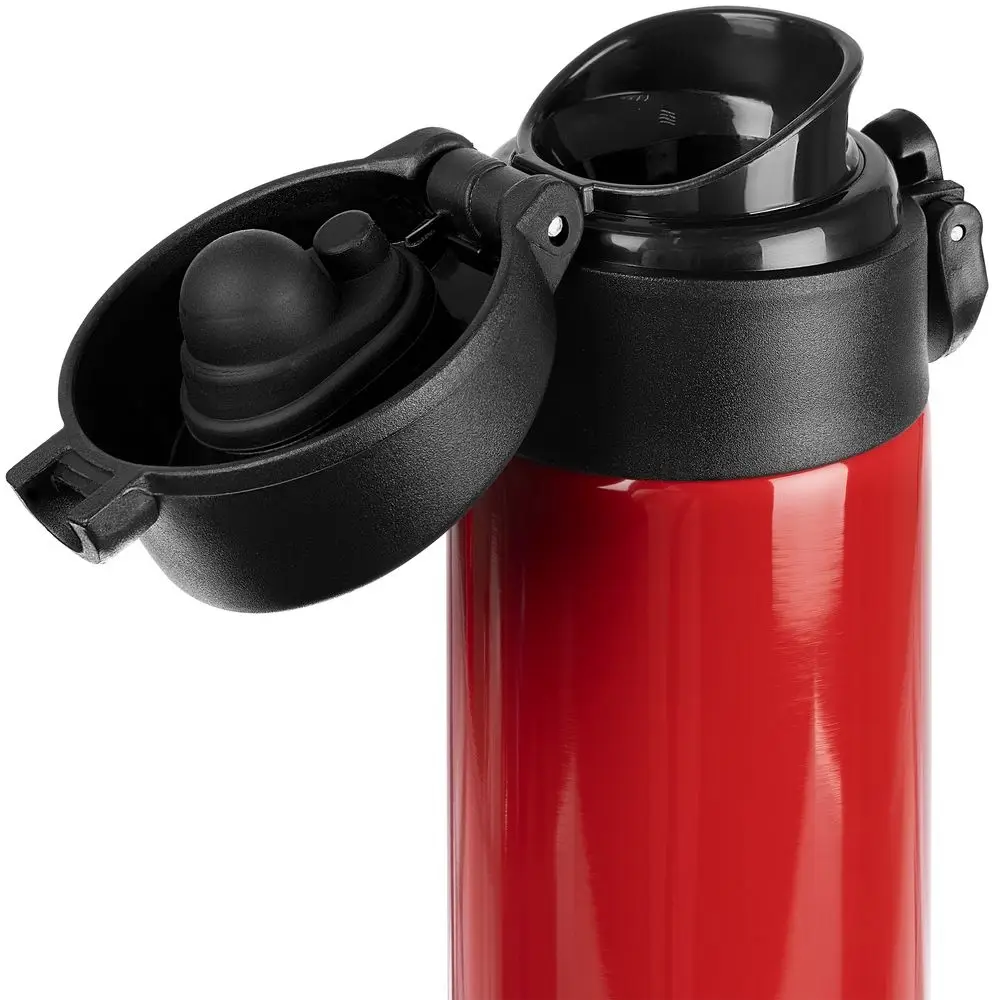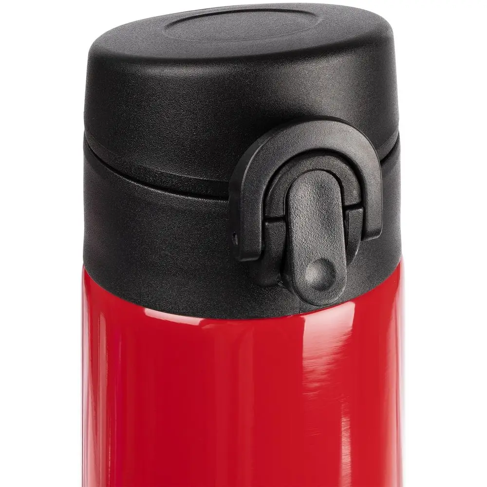 Термостакан Eimer в ровном цилиндрическом корпусе — эстетически приятная форма, на которую удобно делать круговое нанесение. Крышку с отщелкивающимся клапаном легко открыть одной рукой.