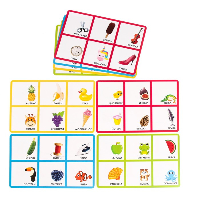 В начале игры у каждого игрока есть по одной картонной карточке. Когда ведущий начнёт доставать прозрачные, скорее забирайте их, если они вам подходят. Кто первым заполнит свою карточку, тот и победил! С таким лото интересно не просто играть, но ещё и учить буквы. На обороте карточек вы найдёте ещё одну игру!