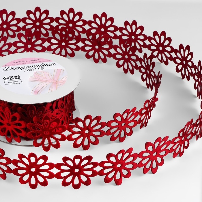 Лента фигурная «Крупный цветок», 40 мм, 9 ± 0,5 м, цвет бордовый